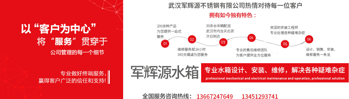 武漢軍輝源不銹鋼有限公司是華中地區(qū)專業(yè)生產(chǎn)不銹鋼水箱的環(huán)保企業(yè),公司集不銹鋼水箱開發(fā)設(shè)計(jì)、生產(chǎn)、銷售、維修、售后服務(wù)為一體。